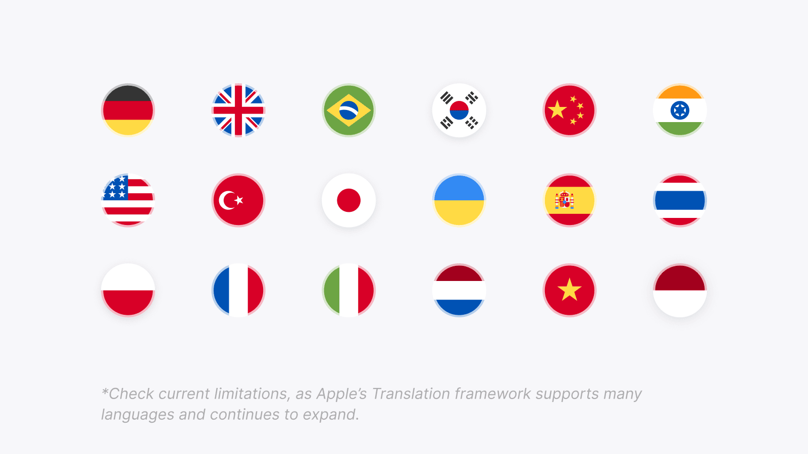 The list of supported languages is not fixed and may evolve with future Apple releases. PDF Expert displays all languages currently available through Apple’s translation framework. At the moment, supported languages include: