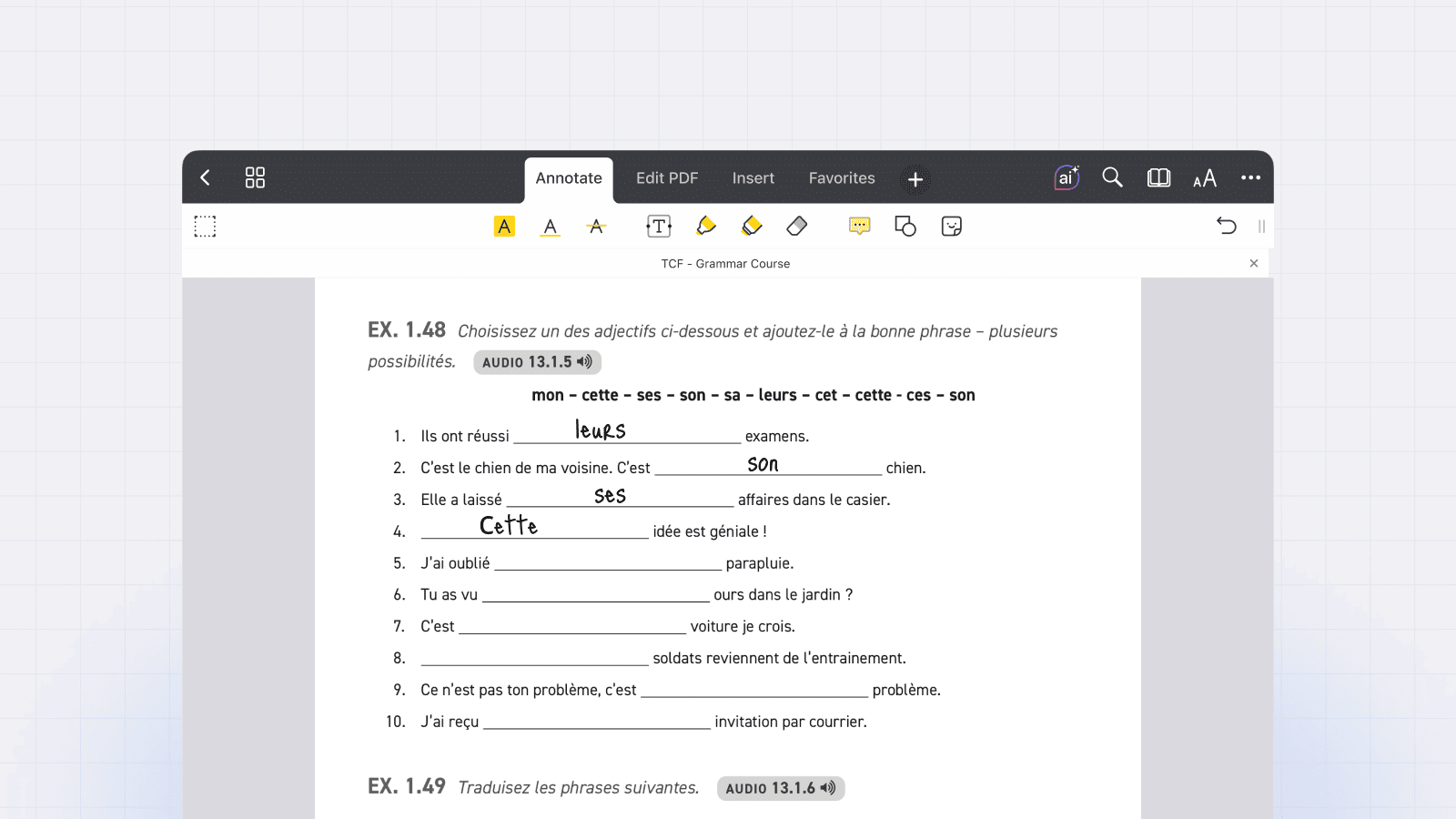 PDF Expert: David uses it for all non-musical text, such as research papers, books, and language-learning materials. He uses PDF Expert daily to mark text and take notes, which lets him ditch heavy physical books, such as those for learning French. He also appreciates iCloud storage sync, which lets him access his documents on other devices.