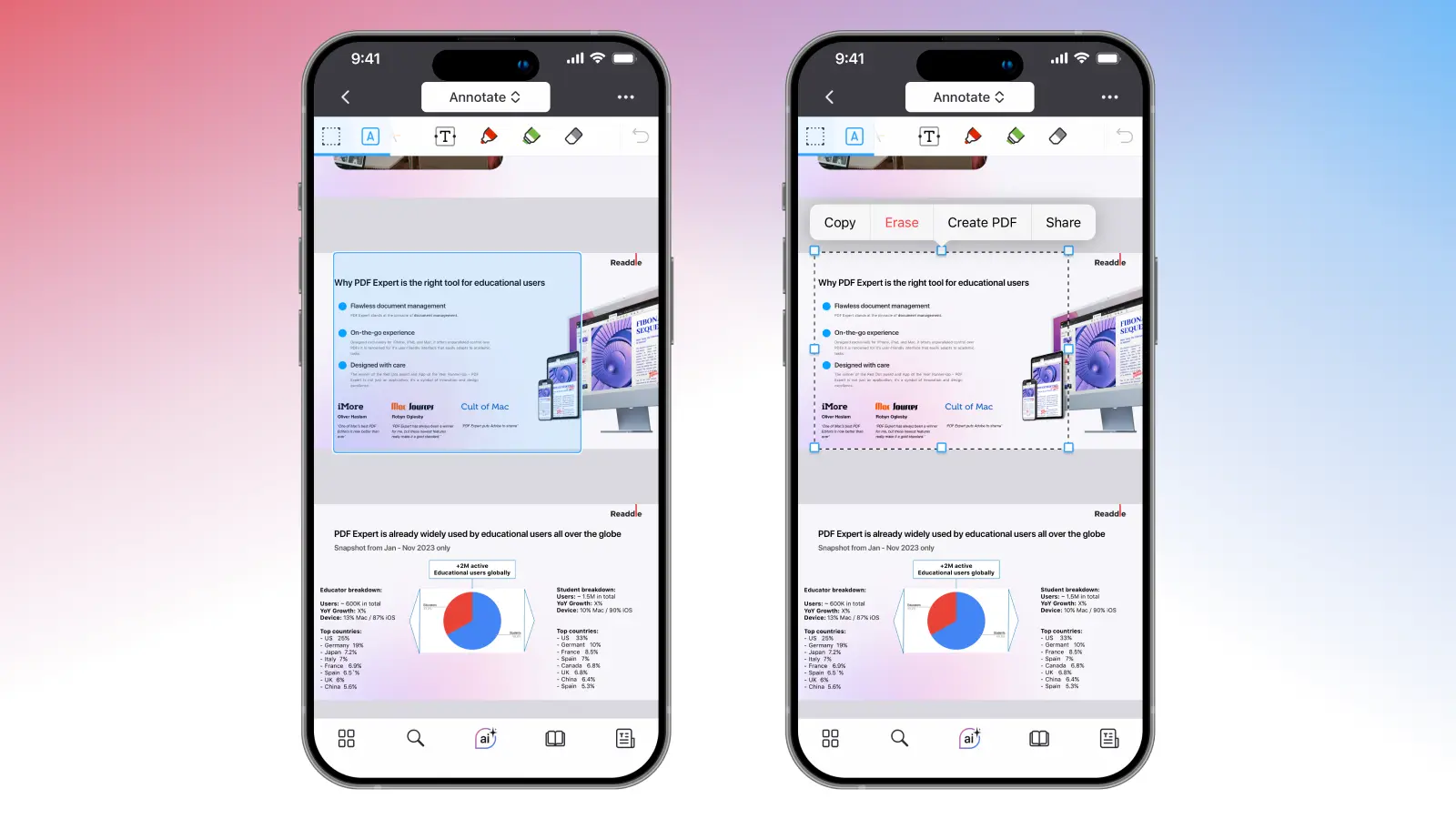 When you crop PDF pages in PDF Expert, the trimmed areas aren’t deleted – they’re just visually removed. That means you can always revert your crop later without losing data. And if you’re cropping a PDF page on your iPhone, the app simply creates a new PDF for every trimmed page, keeping your original file intact.