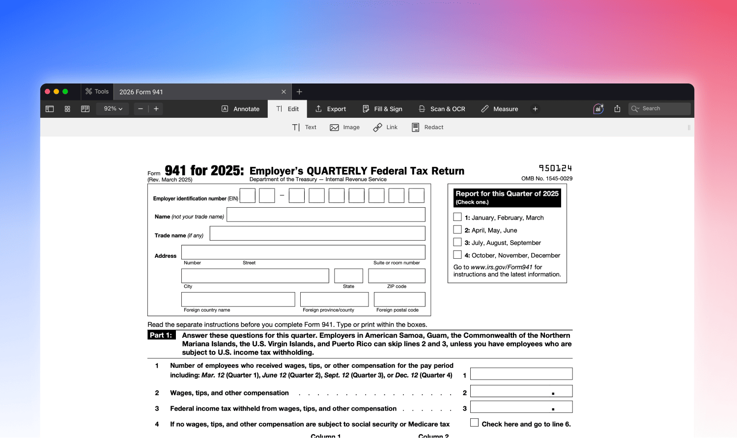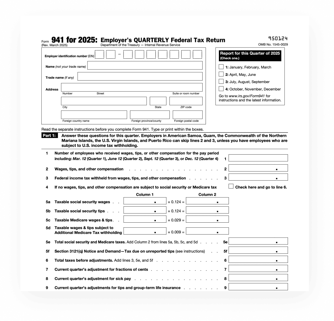 If you’re a business or a non-profit based in the US and you have employees working for you on your payroll, then you are also responsible for withholding their federal income taxes and other taxes that are applicable on the employee’s monthly salary in compliance with IRS policies, such as the Social Security and Medicare tax for 2026. The IRS Form 941 for 2026, officially titled as “Employer’s QUARTERLY Federal Tax Return” is used to file and report the total amount of tax an employer withholds from employees.