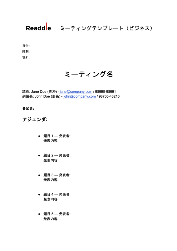 ミーティングアジェンダ(ビジネス)のテンプレート