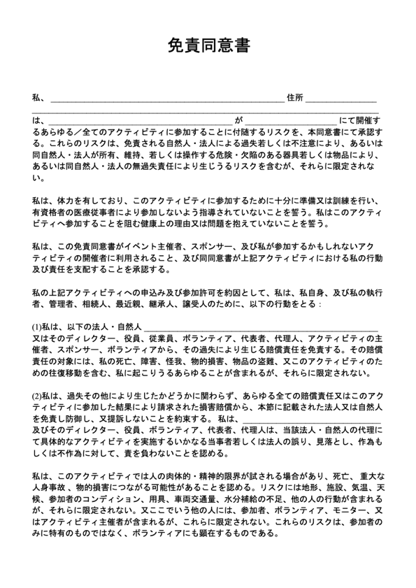 - イベント時の賠償責任免責書