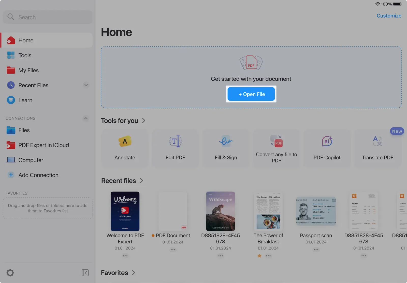 - Відкрийте PDF Expert і виберіть PDF-файл, який хочете перекласти.