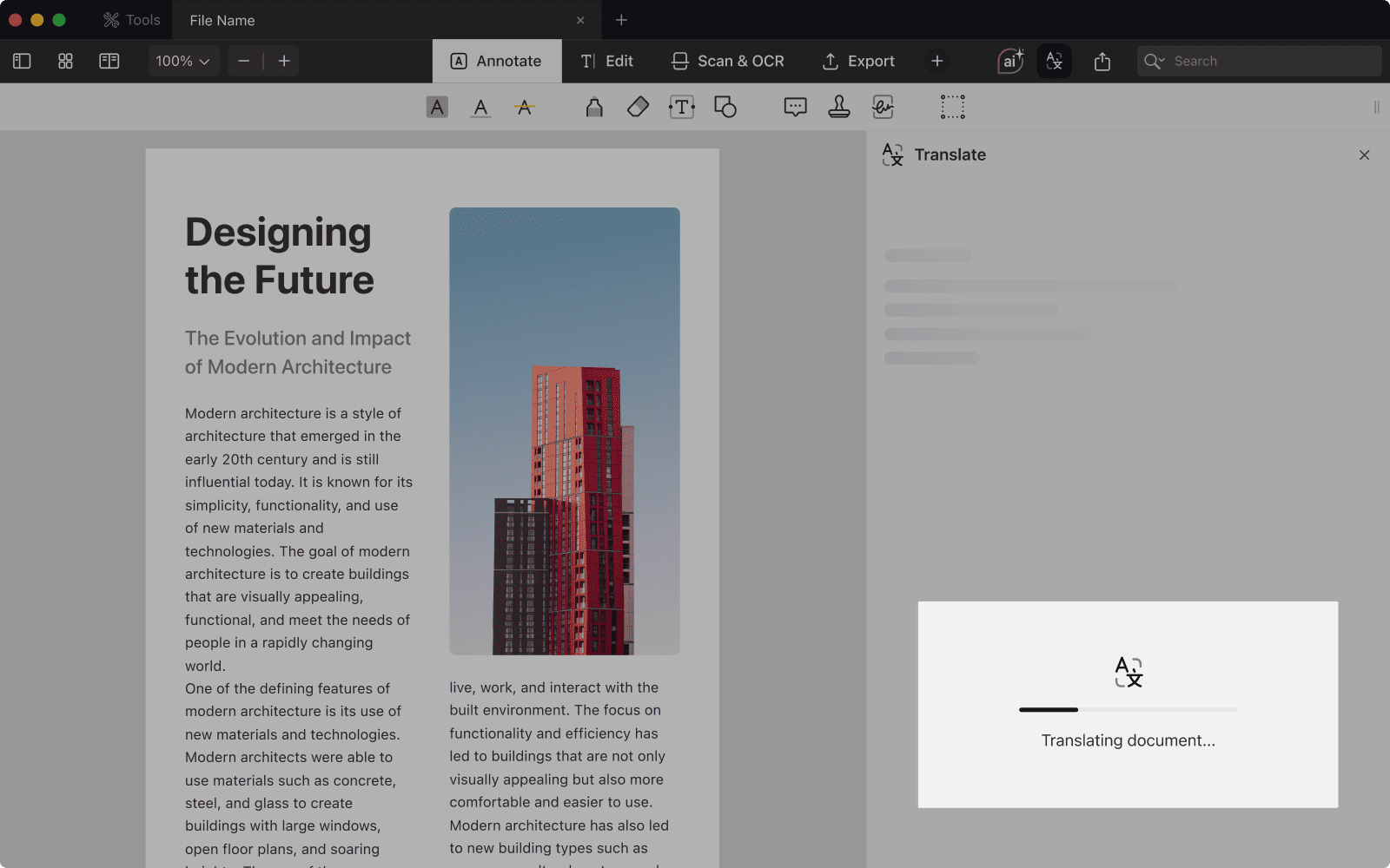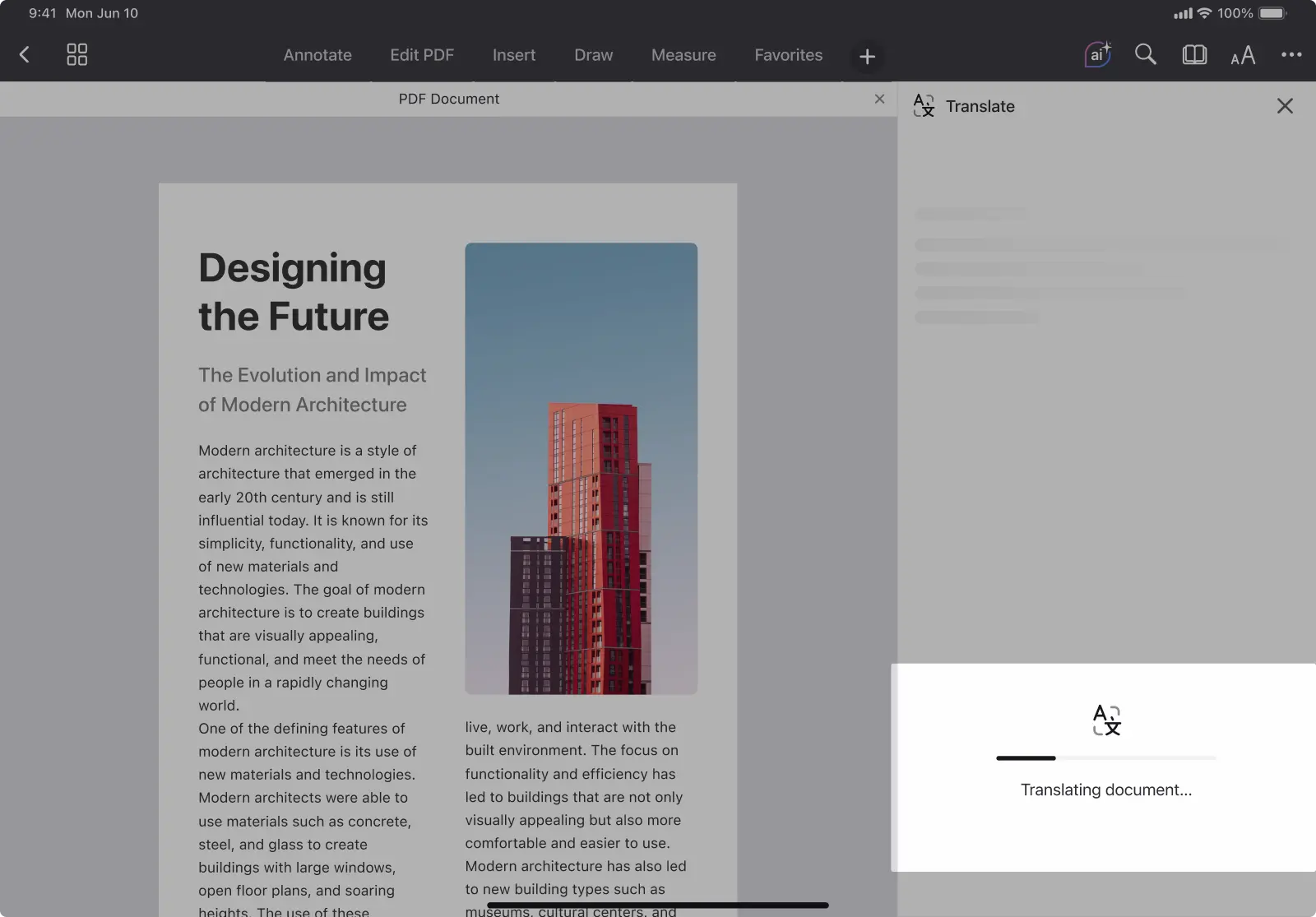 Долайте мовні бар’єри й робіть свої PDF доступними для читачів у всьому світі. Незалежно від того, навчаєтеся ви, працюєте чи досліджуєте контент іншою мовою, PDF Expert допоможе вам безпечно й зручно перекладати документи — все в одному місці.