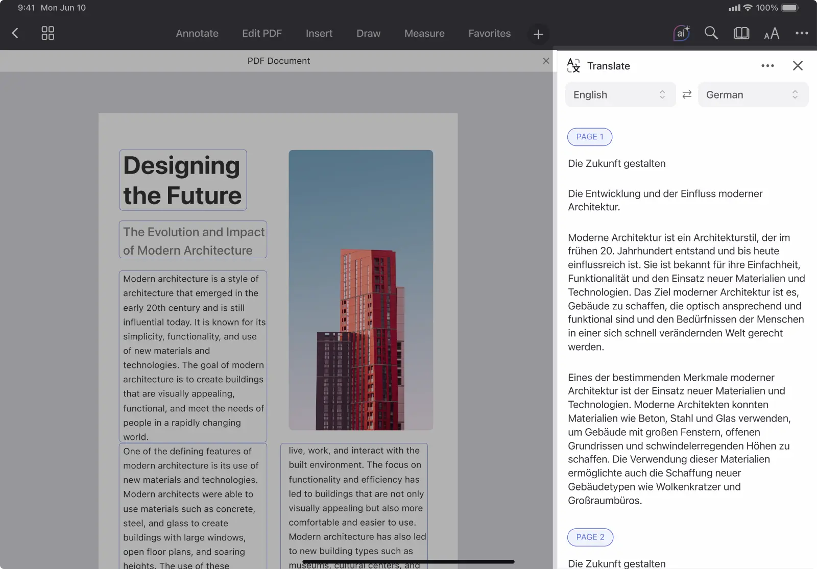 Почніть свою 7-денну безплатну пробну версію PDF Expert вже сьогодні та відкрийте для себе інструмент перекладу. Зробіть свої PDF легко читабельними будь-якою мовою.